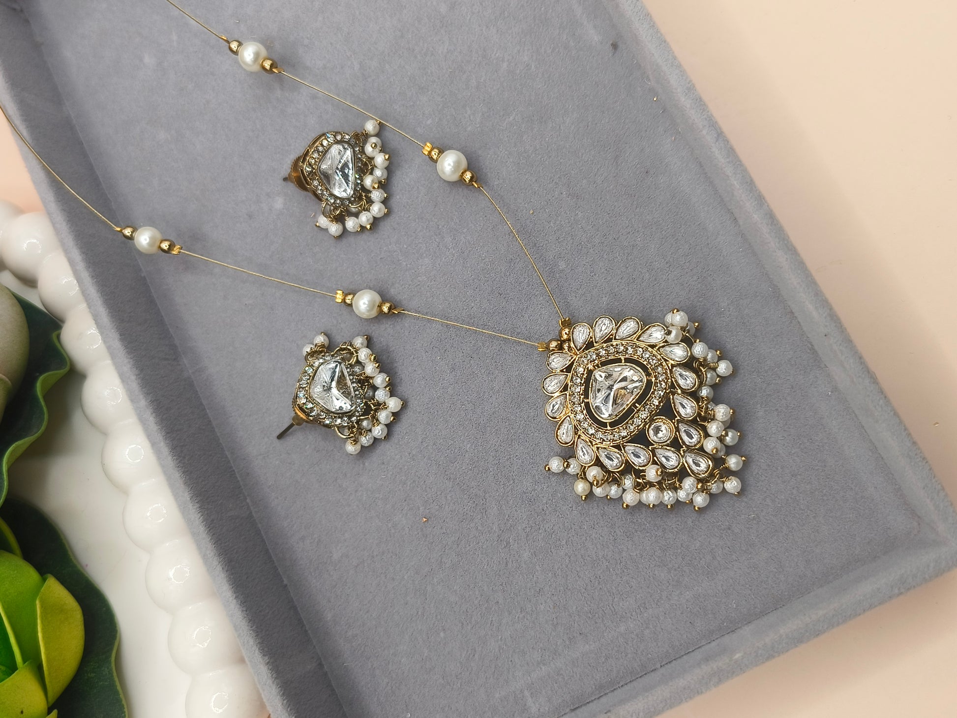 Elegant Kundan Pendant Set with Pearl Drops | Lightweight Daily & Festive Wear Necklace Set