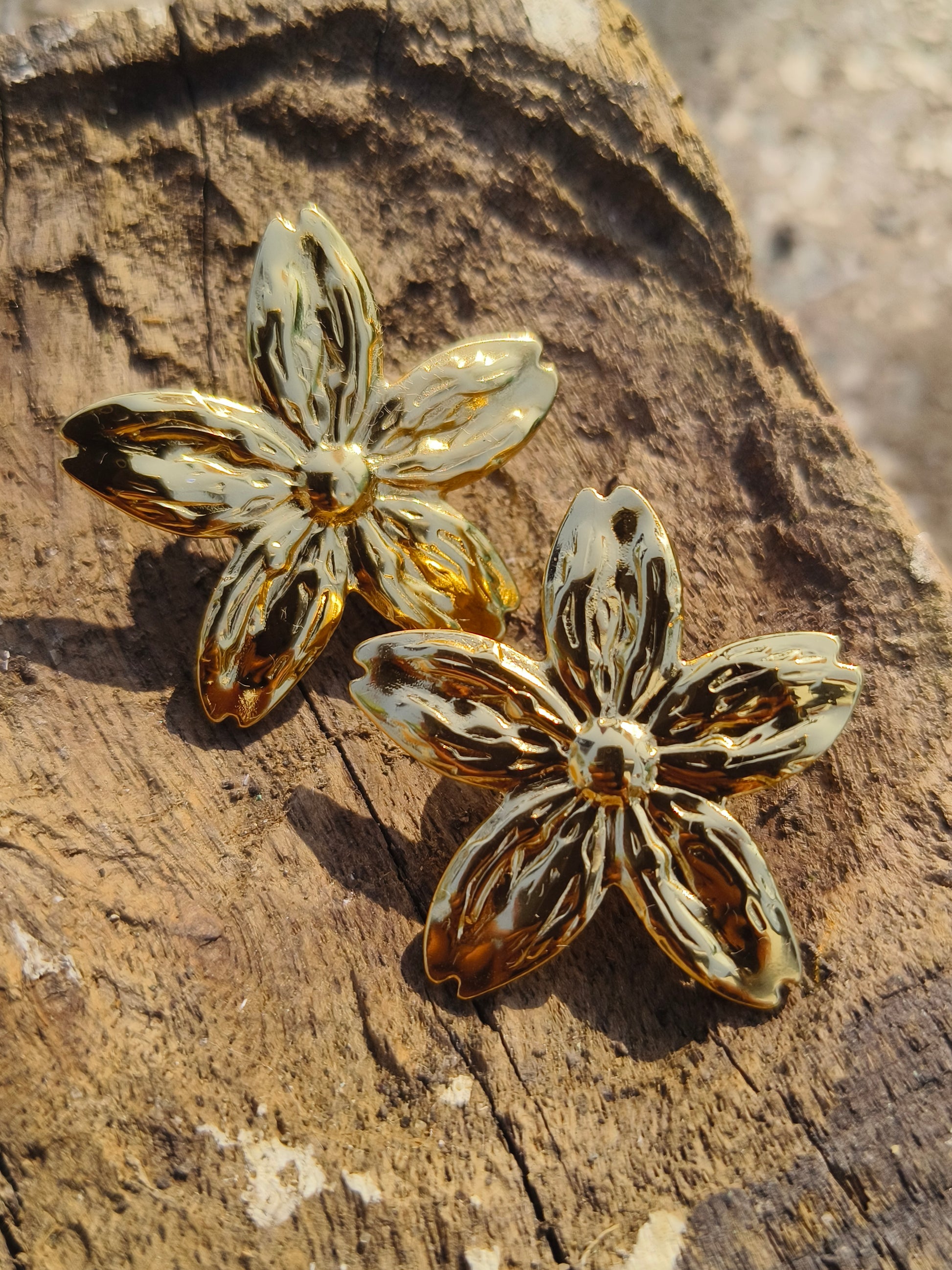 Gold Floral Textured Stud Earrings | Anti-Tarnish | Waterproof | Statement Flower Jewellery
