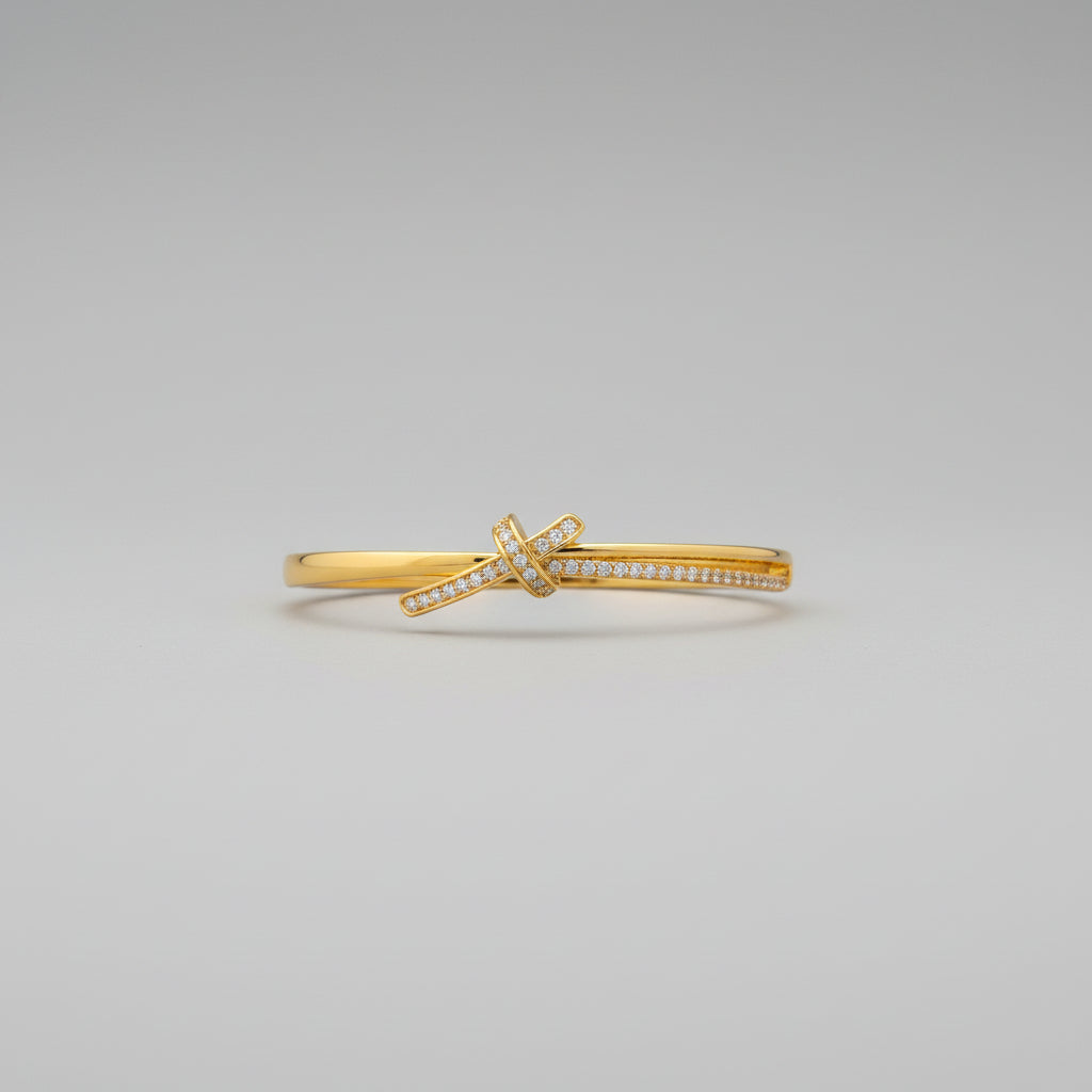 Gold Plated Knot Cuff Bracelet for Women | Crystal Studded Open Bangle | Anti Tarnish Adjustable Minimal Bracelet for Daily & Party Wear