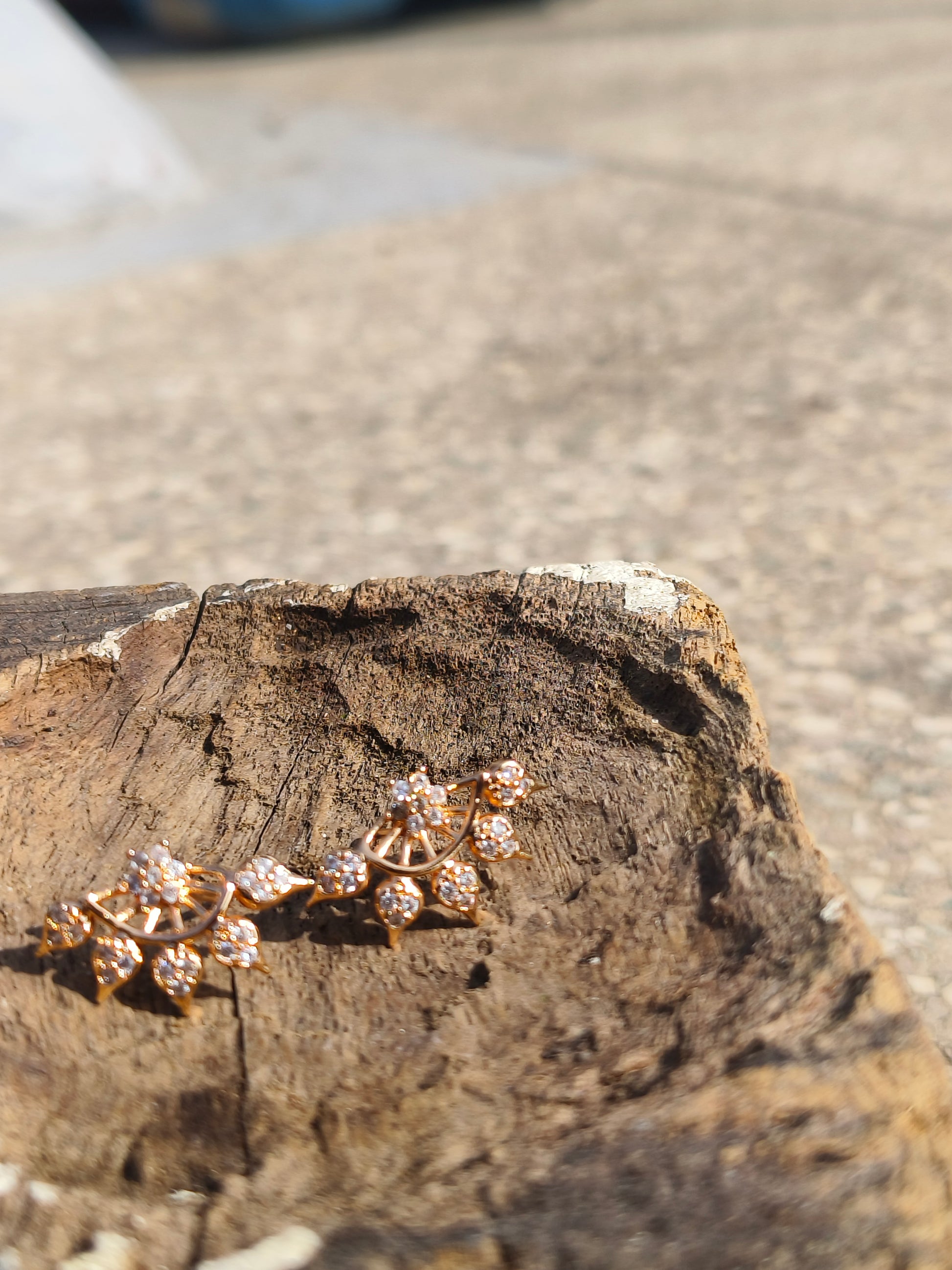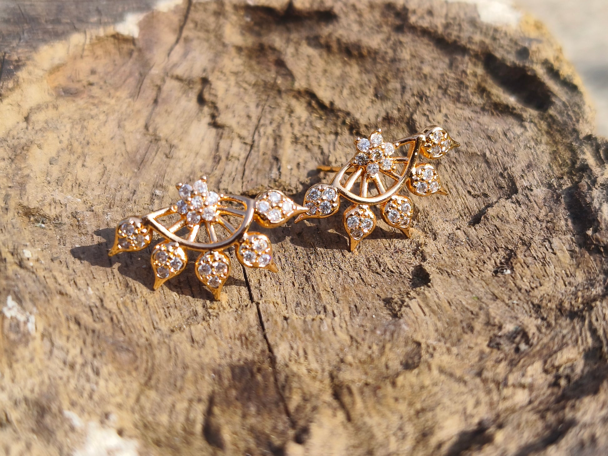 Gold-Tone Floral Fan American Diamond Stud Earrings | Elegant Ethnic Studs