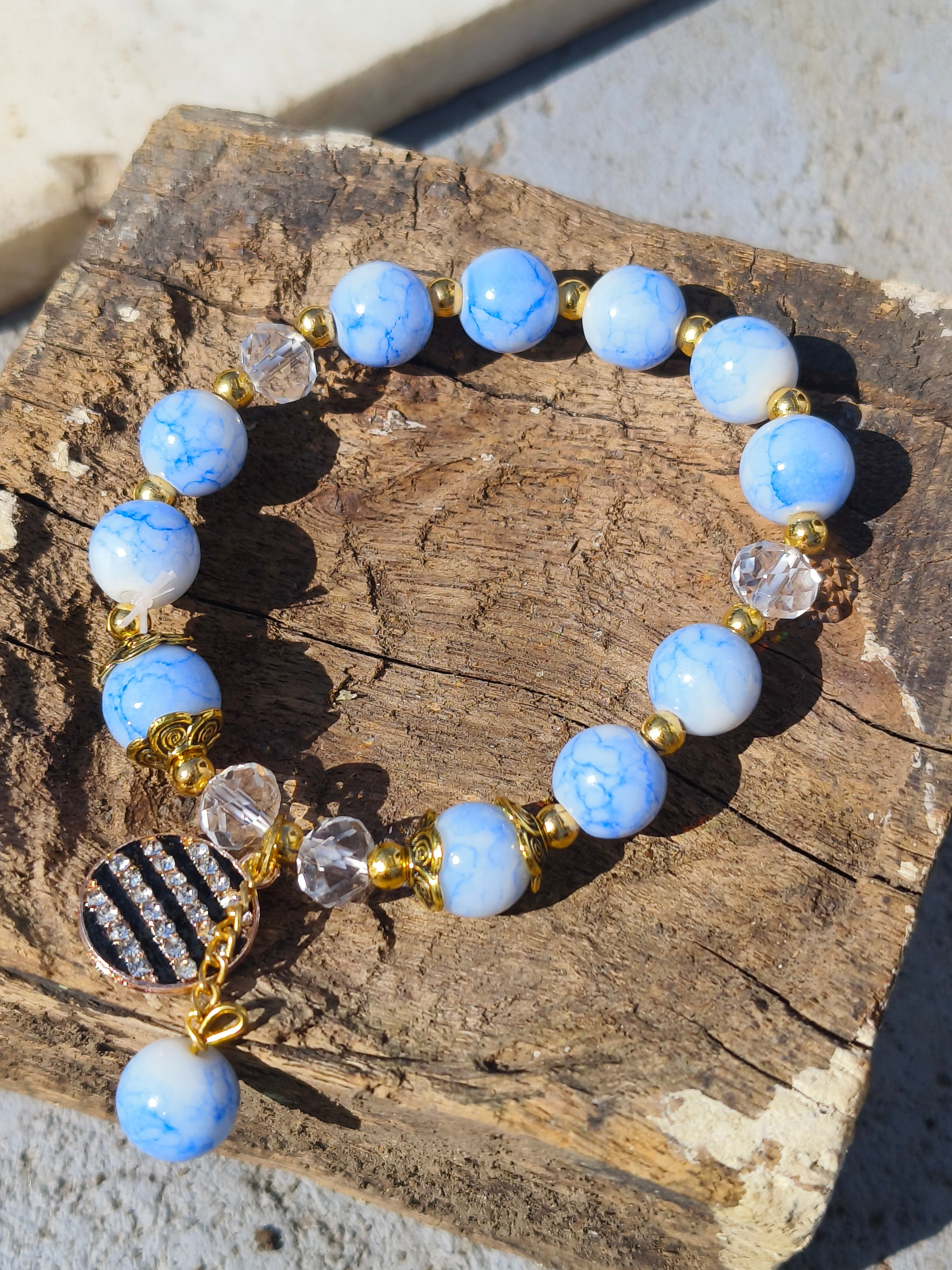 Beads: Marble finish & crystal spacers